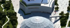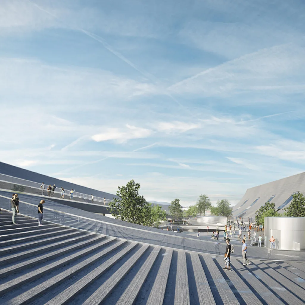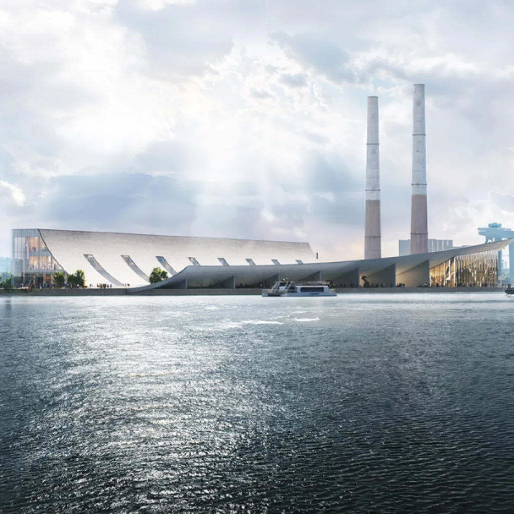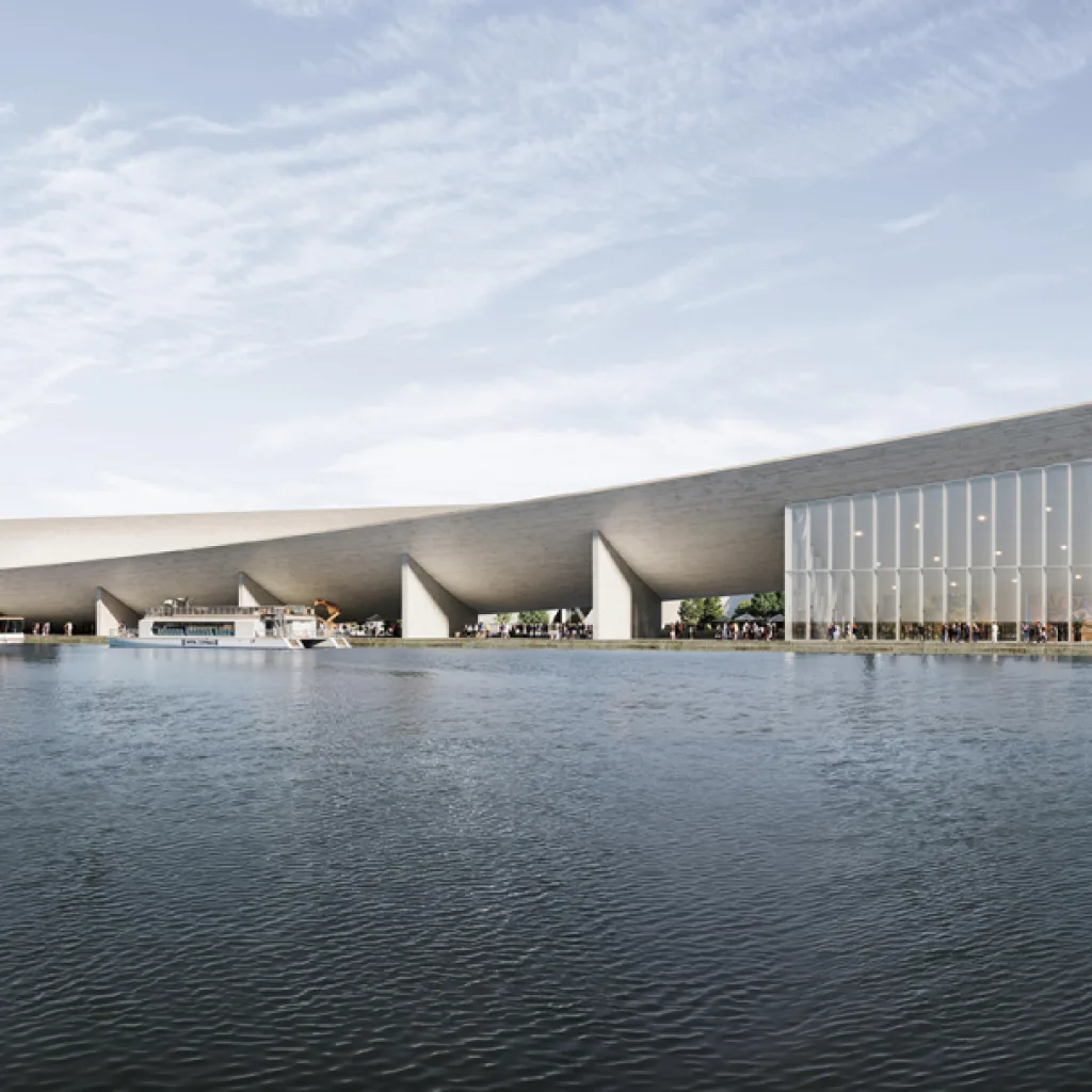 The program includes permanent and temporary exhibition halls, a performance hall, flexible event and cultural spaces, and outdoor public areas connected to the waterfront dock. This mix supports a range of cultural formats while maintaining adaptability over time. Interior spaces are organized to provide clear circulation and orientation, with views toward the harbor reinforcing the relationship between the building and its maritime context.
